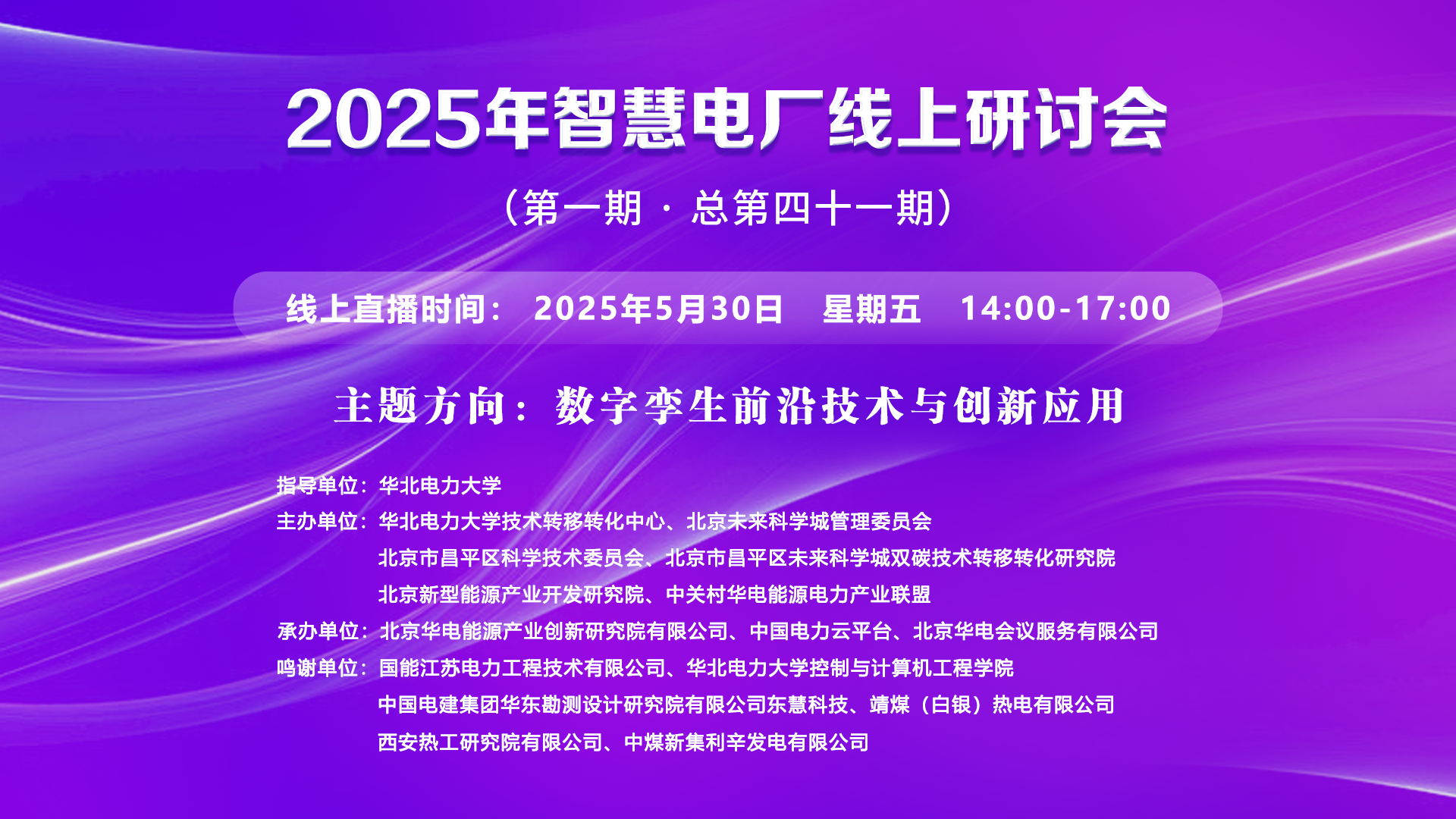 2025年智慧電廠線上研討會(huì)(第一期·總第四十一期)一、講座主題:數(shù)字孿生前沿技術(shù)與創(chuàng)新應(yīng)用 二、講座時(shí)間:2025年5月30日 星期五 14:00-17:00 三、講座地點(diǎn):線上直播:https://t19c5.xetlk.com/sl/4fX1M3(聯(lián)系人李老師 18911662193) 四、主講人信息: (一)主講人:朱威 1.主講...主講人:朱威、胡陽、章琛、盧海金、王軍民、代濤時(shí)間:2025-05-30 14:00地點(diǎn):線上講座 -