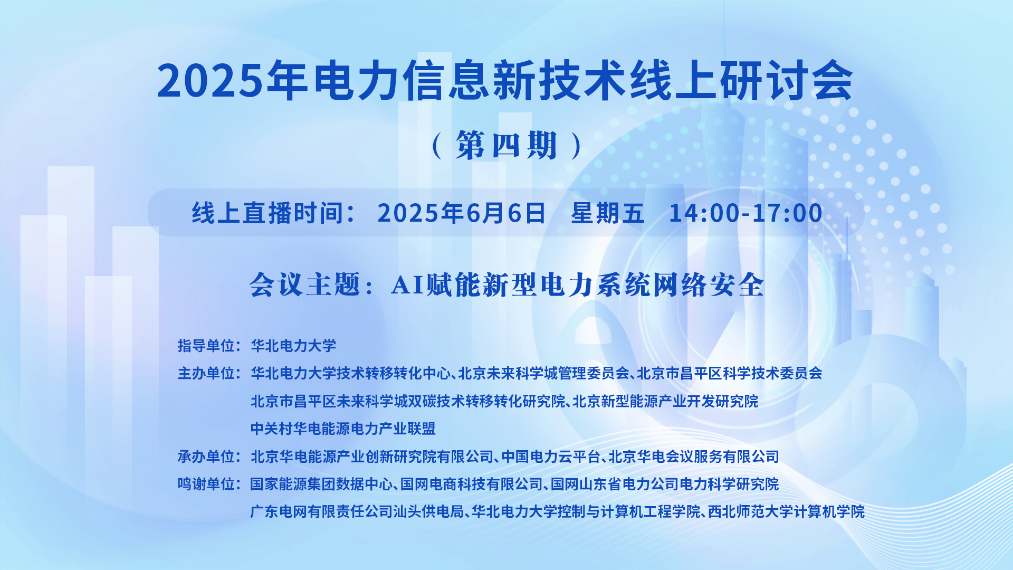 2025年電力信息新技術(shù)線上研討會(huì)(第四期)一、講座主題:AI賦能新型電力系統(tǒng)網(wǎng)絡(luò)安全 二、講座時(shí)間:2025年6月6日 星期五 14:00-17:00 三、講座地點(diǎn):線上直播:https://t19c5.xetlk.com/sl/3J08JD(聯(lián)系人:雷捷婷15301327986) 四、主講人信息: (一)主講人:丁志成 國家能源集團(tuán)數(shù)據(jù)中心...主講人:丁志成、彭天齊、張昊、林裕新、李建彬、楊小東時(shí)間:2025-06-06 14:00地點(diǎn):線上講座 -