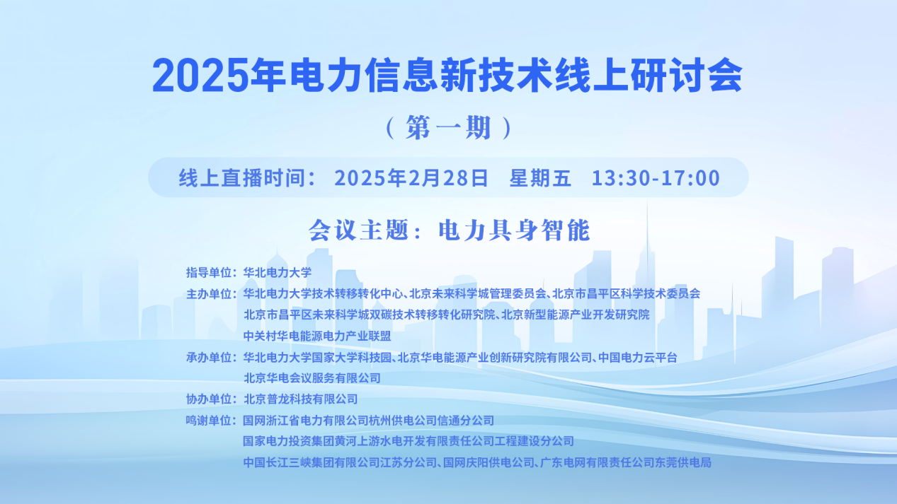 2025年新型電力系統(tǒng)線上研討會(第一期·總第二十九期)一、講座主題:電力算力協(xié)同 二、講座時間:2025年2月14日 星期五 14:00-17:00 三、講座地點:線上直播:https://wlwth.xetlk.com/sl/4CqKTT(聯(lián)系人劉敏13331120445) 四、主講人信息: (一)主講人:岳昊 主講人簡介:岳昊,博士,教授級高級工程師...主講人:岳昊、趙利寧、丁肇豪、周峰、高嘯、李申章時間:2025-02-14 14:00地點:線上講座 -