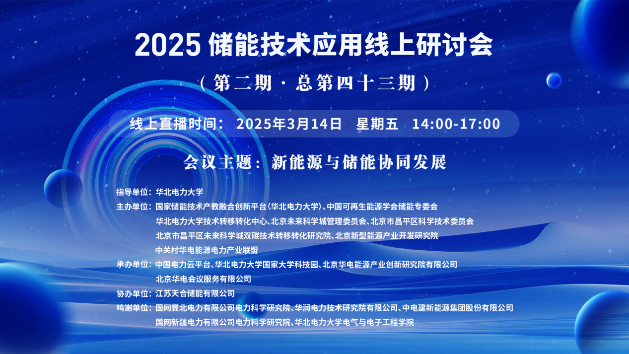 2025年儲能技術(shù)應(yīng)用線上研討會(第二期·總第四十三期)【講座主題】新能源與儲能協(xié)同發(fā)展 【講座時間】3 月 14 日 星期五? 14:00-17:00 【講座地點】https://wlwth.xetlk.com/s/zaW1D ?????????? 王航杰15321299518 ? 1.【主講人】王澤森? 國網(wǎng)冀北電力有限公司電力科學(xué)研究院電網(wǎng)技術(shù)中心高...主講人:王澤森、孫鵬、孫鵬、孫亞冰、張智 、亞夏爾·吐爾洪 劉峻時間:2025-03-14 08:20地點:線上講座 -
